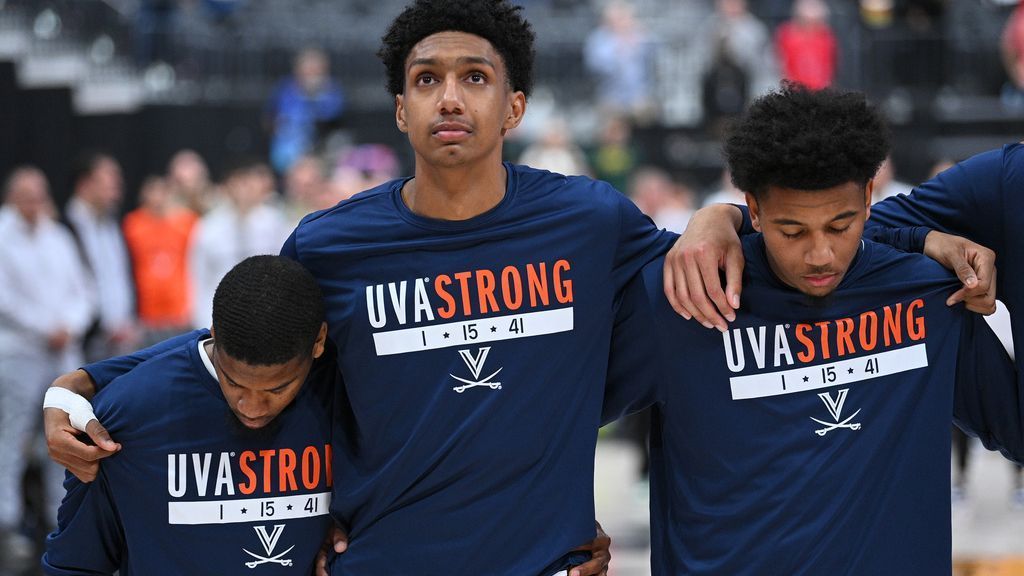 Virginia’s players wore sweatshirts during warmups that honored the victims from Sunday’s shooting, which led to the cancellation of the Cavaliers’ scheduled home game a day later. A former Virginia football player has been charged with murder in the slayings of Lavel Davis Jr., Devin Chandler and D’Sean Perry.